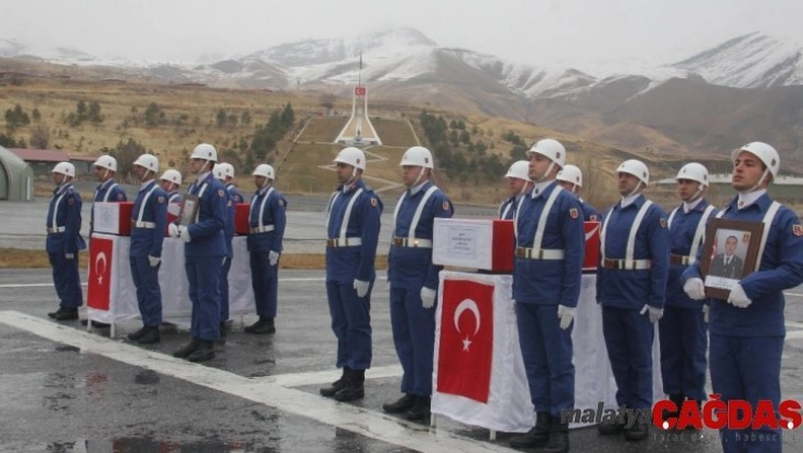 Hakkari’de yıldırım düşmesi sonucu şehit olan askerler için uğurlama töreni düzenlendi.
