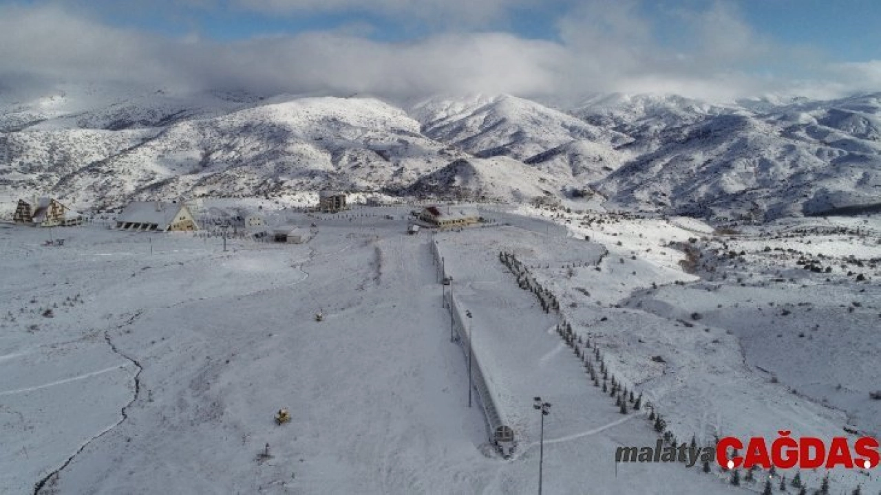 Sivas Yıldız Dağı Kış Sporları ve Turizm Merkezi mevsimin ilk karının yağmasıyla beyaza büründü.