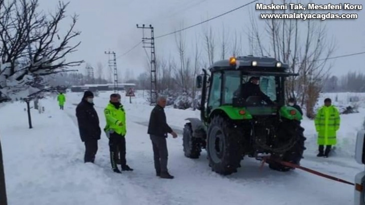 Malatya'nın Doğanşehir ilçesinde yoğun kar yağışı ve buzlanma nedeniyle yolda kalan araçlar, Sürgü-Erkenek karayolunu ulaşıma kapattı.