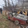 Afyonkarahisar’da yoğun yağmur nedeniyle medyana gelen kazada araç şarampole yuvarlandı, 1 kişi yaralandı.