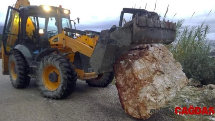 Yolu kısmen kapatan kaya parçaları ulaşımda aksamalara neden olurken, Demre Belediyesi ekiplerinin çalışması sonucu yol trafiğe açıldı.