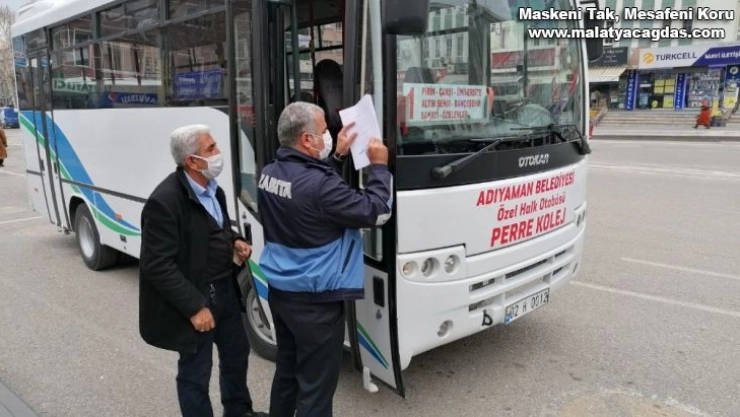 Adıyaman Belediyesi Zabıta Müdürlüğüne bağlı Trafik Amirliği ekiplerince kent merkezindeki yolcu otobüslerinde korona virüs denetimleri gerçekleştiriliyor.
