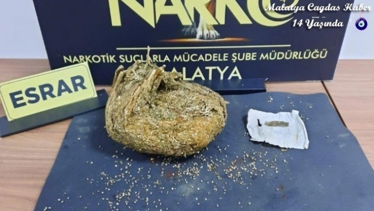 Edinilen bilgiye göre, Malatya Emniyet Müdürlüğü Narkotik Suçlarla Mücadele Şube Müdürlüğü ile Kaçakçılık ve Organize Suçlarla Mücadele Şube Müdürlüğü tarafından koordineli olarak yapılan çalışma sonucunda, Siirt-Samsun seferini yapan otobüs, Elâzığ yolu 2 no’lu uygulama noktasında durduruldu. Otobüste yapılan aramada, 1 şahıstan 1071 gram Kubar Esrar maddesi ele geçirildi. Konu ile ilgili olarak, Y.Ç isimli şahıs yakalanarak TCK 188 suçundan işlem yapıldı.