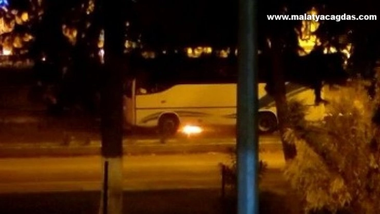 Adıyaman'da, seyir halindeki yolcu otobüsünün alev alarak yanması paniğe neden oldu.