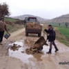 - Yolda oluşan çukurları köylüler kapatıyor