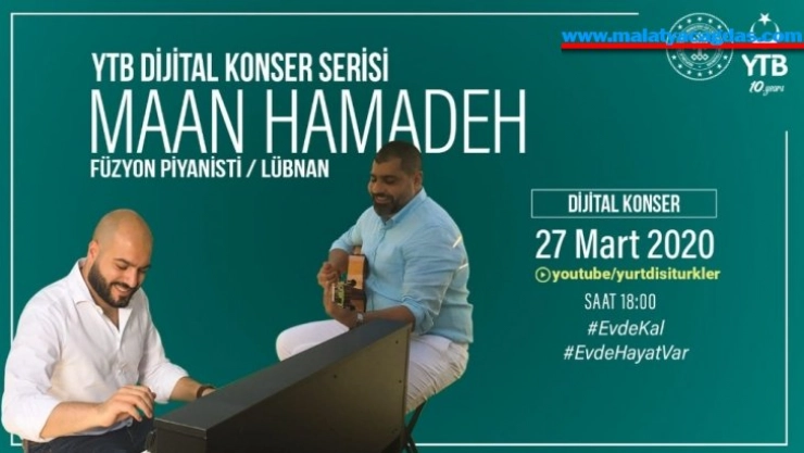 Yurtdışı Türkler ve Akraba Topluluklar Başkanlığı (YTB), korona virüs salgını nedeniyle evlerinde zaman geçiren vatandaşlar için dijital konserler düzenliyor. Bu akşam da saat 18.00'de Lübnanlı piyanist Maan Hamadeh, YTB'nin YouTube hesabı üzerinden vatandaşlarla buluşarak piyano resitali sunacak.