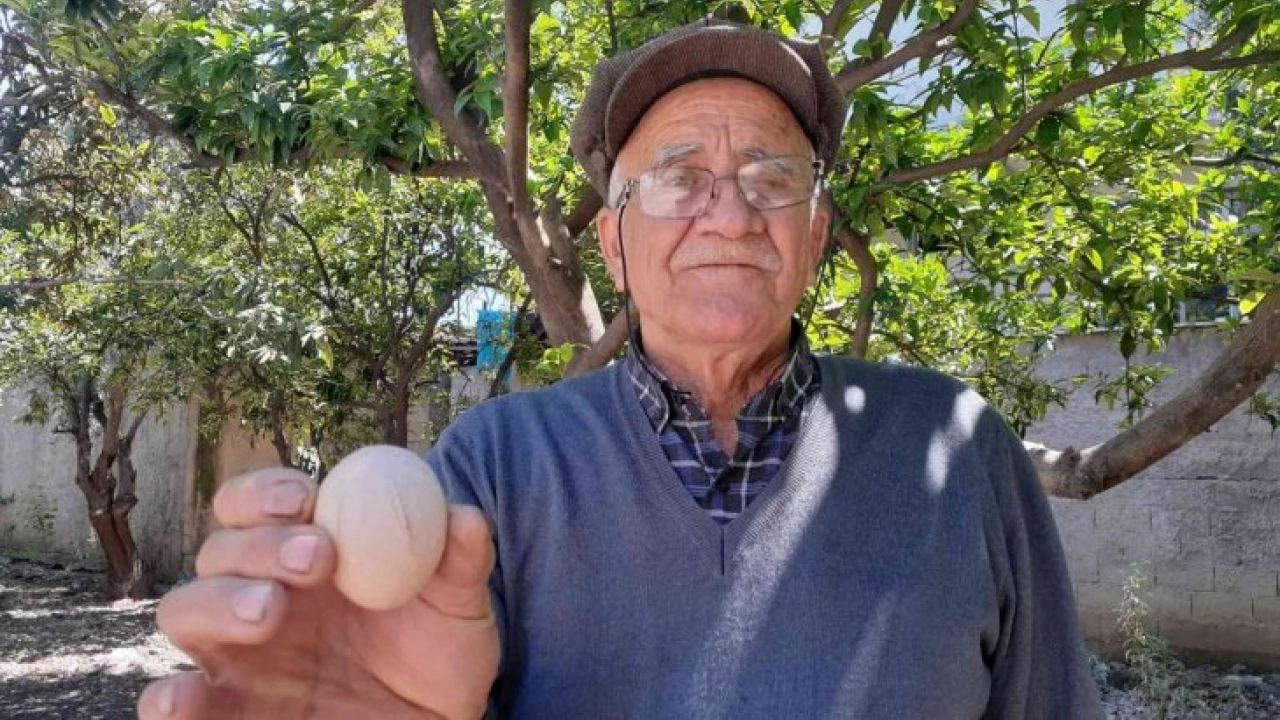 Osmaniye'nin Kadirli ilçesinde kümeste beslediği tavuğunun yumurtasını göktaşı zanneden 80 yaşındaki yaşlı adam 'Korktum kaçtım, oğlumu çağırdım' dedi.