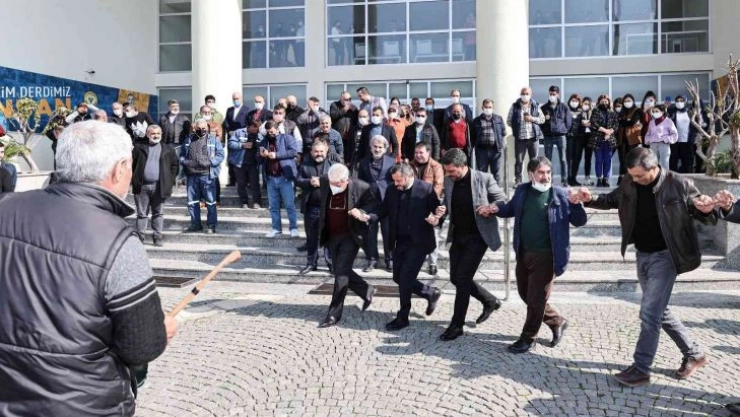 Başkan Fatih Mehmet Kocaispir’in yüzde 52,6’lık zam müjdesinin ardından işçiler belediye bahçesinde davul zurna eşliğinde halay çekti. Başkan Kocaispir’in de halaya eşlik ederek katıldığı kutlamada renkli görüntüler oluştu. Kocaispir’e teşekkür eden işçiler, maaşlarına bugüne kadar görülmemiş oranda bir zam yapıldığını söyleyerek mutluluklarını dile getirdiler.
