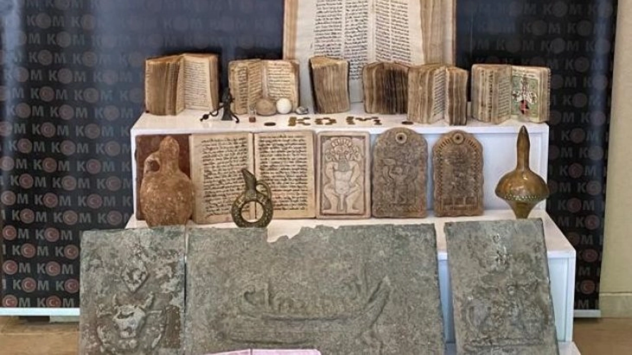 Alınan bilgiye göre, İl Emniyet Müdürlüğü Kaçakçılık ve Organize Suçlarla Mücadele Şube Müdürlüğü görevlileri, yaptıkları çalışma sonrası tarihi eserlerin yurt dışına kaçak yollarla çıkarılmaya çalışıldığını belirledi. Harekete geçen ekipler, bir evde yaptıkları aramada Antik Yunan, Bizans, Osmanlı dönemlerine ait olduğu değerlendirilen heykel, toka, işlemeli levhalar, 27 adet sikke, 9 adet el yazması eski kitap, 2 adet madalya, 2 adet testi, 1 adet tabak, işlemeli taşlar ele geçirdi.