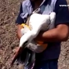 Sivas'ın Suşehri ilçesinde etkili olan rüzgar sonrası yuvasından düşerek yaralanan leylek tedavi altına alındı.