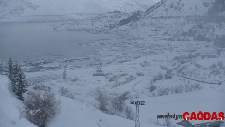 Dünyada eşi ve benzerine az rastlanan Adıyaman'ın Çelikhan ilçesi Çat Baraj göletindeki onlarca yüzen adacık kar yağışı ile birlikte ayrı güzelliğe büründü.