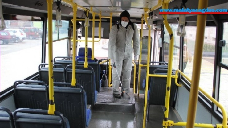 Zara Belediyesi Temizlik Saha Amirliği ekiplerince ilçe merkezindeki cami, cemevi, şadırvan, kütüphane, terminal ile toplu taşıma araçlarında dezenfekte amaçlı ilaçlama yapılıyor.